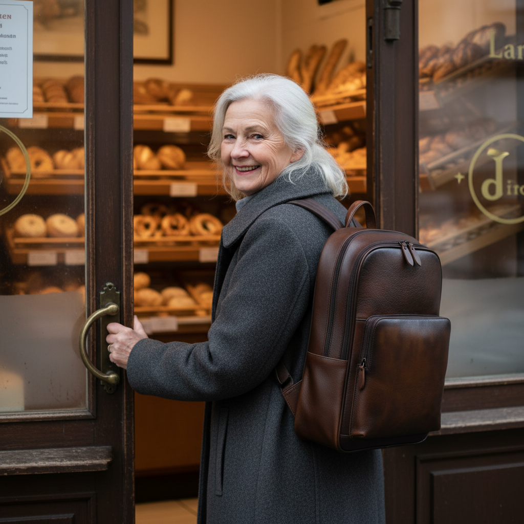 Inside, you’ll find a well-padded compartment for a smaller laptop and several pockets to keep everything organized. The structured shape keeps the backpack stable and makes it comfortable to carry. I wanted to create a piece that is practical, remains durable, and will reliably accompany you for many years.
