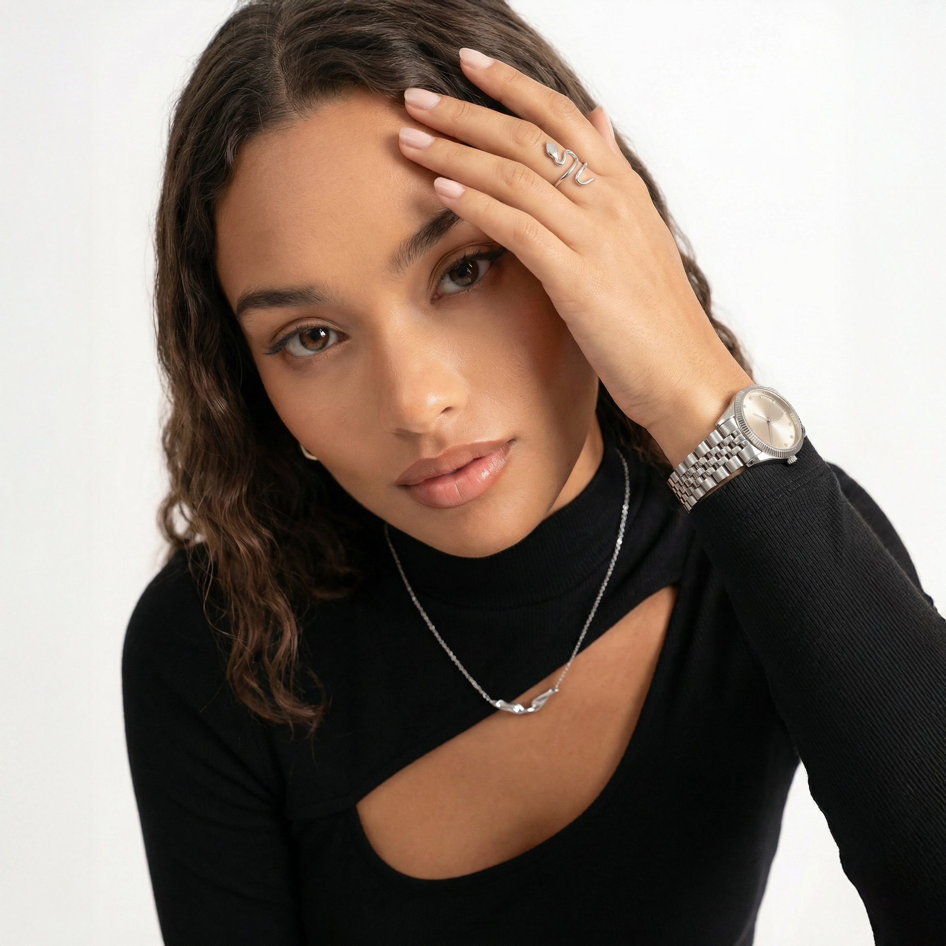 Elegant, tijdloos en ontworpen om elke outfit direct naar een hoger niveau te tillen. De subtiele glans vangt het licht bij elke beweging en geeft je een luxe uitstraling — zonder moeite.